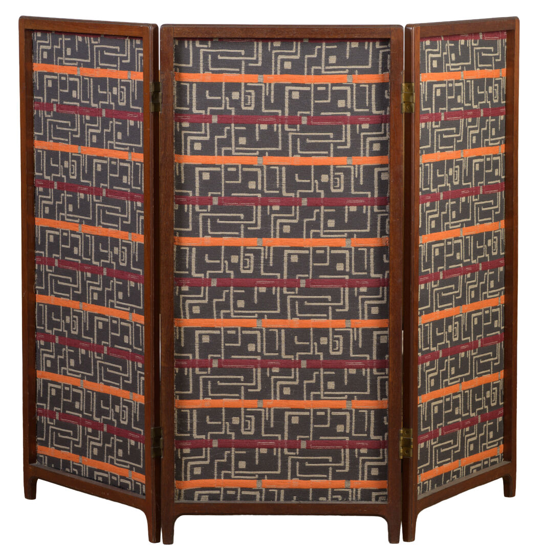 Paravent moderniste en bois. Vers 1930-1940. H : 107,5 cm ; L : 48 cm ; 147 cm (déplié) ; l : 7 cm : l : 2 cm (déplié)