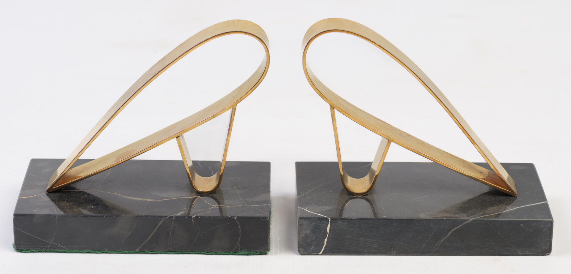 Gold Starry. Paire de serre-livres, dans le goût Art Déco, en métal doré et reposant sur une base en marbre. Vers 1950. H : 12 cm ; L : 14 cm ; l : 8 cm
