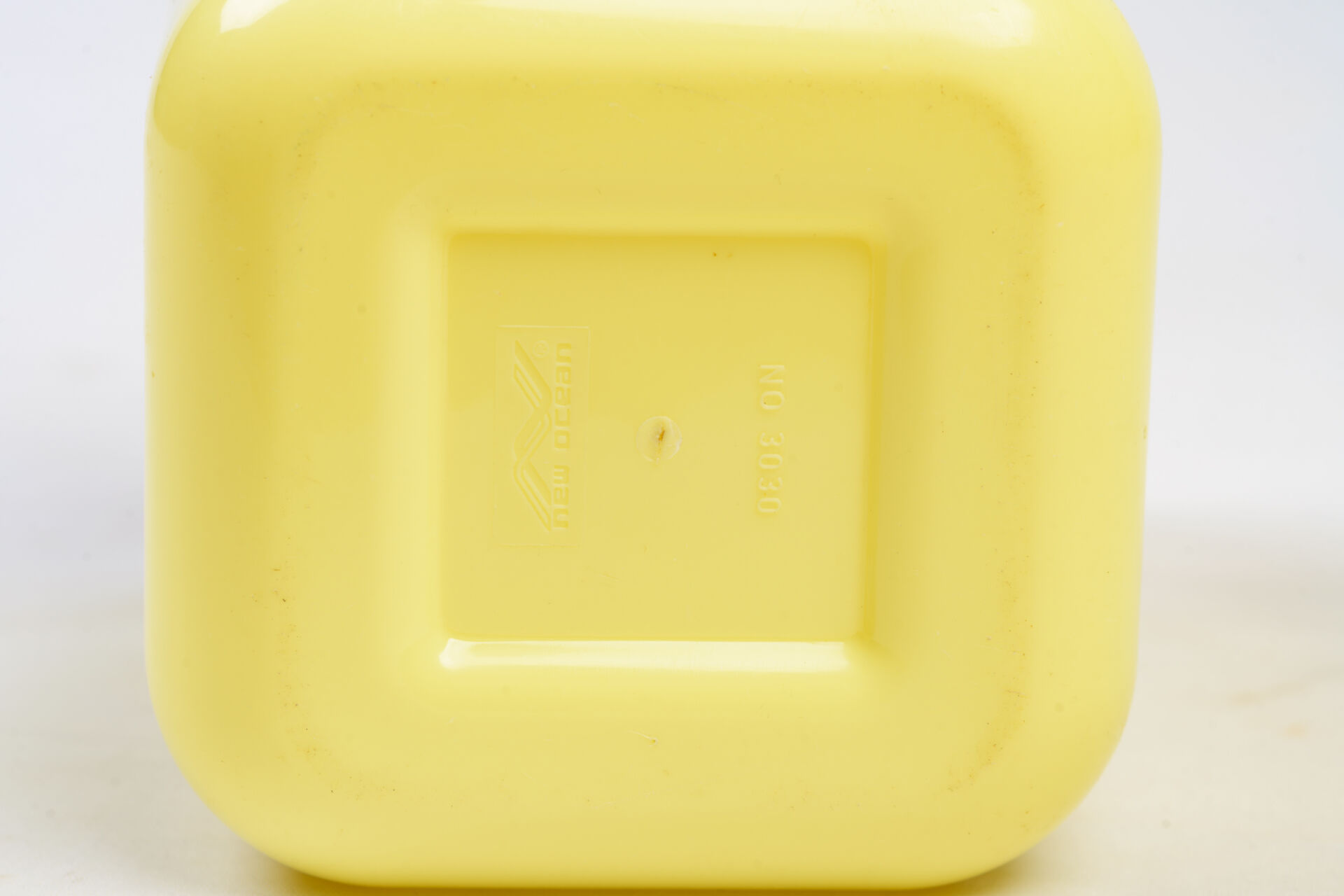 New Ocean. Range-couverts en plastique blanc et jaune. H : 19 cm ; L : 11 cm ; l : 12 cm