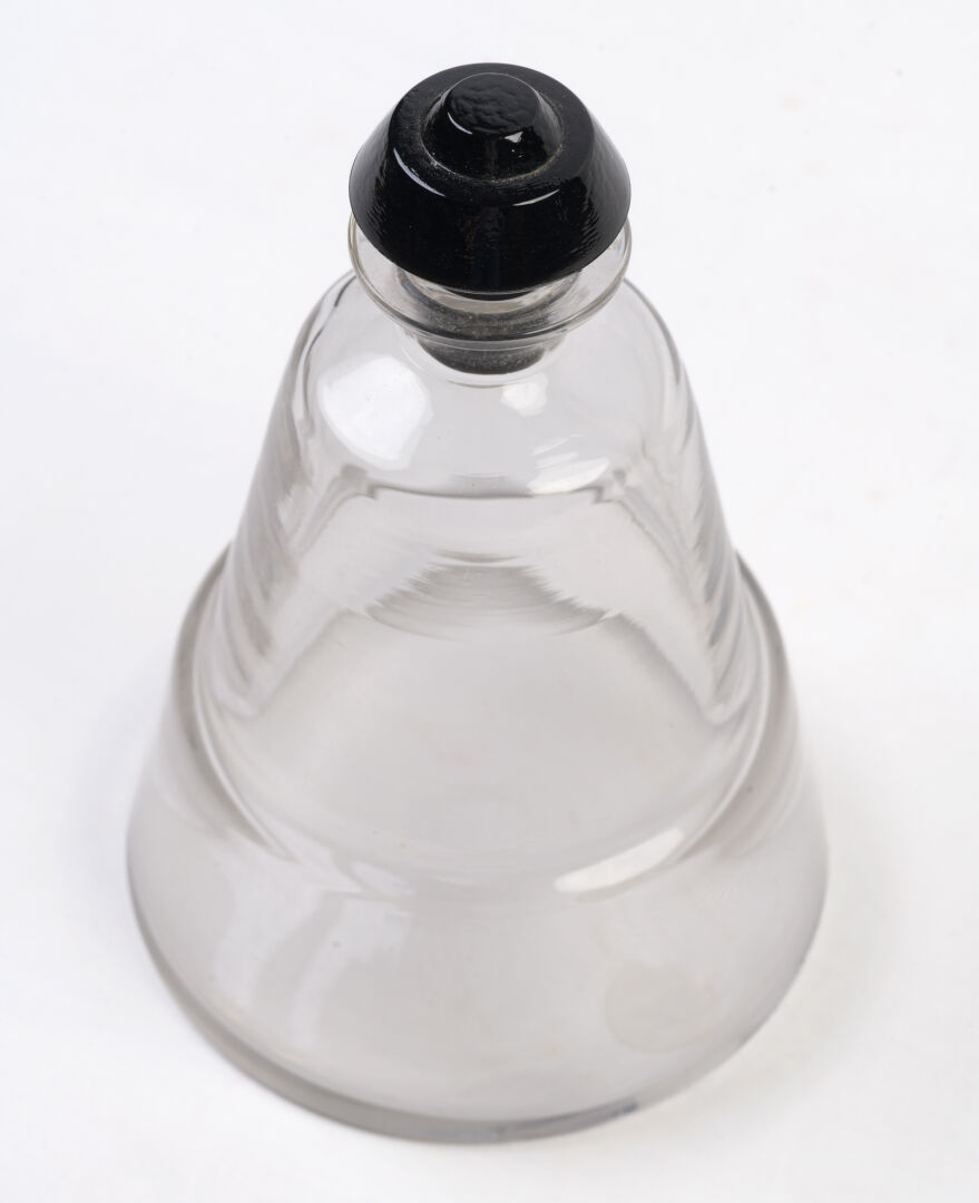 Flacon en verre fumé et verre noir. H : 17 cm ; D : 10,5 cm