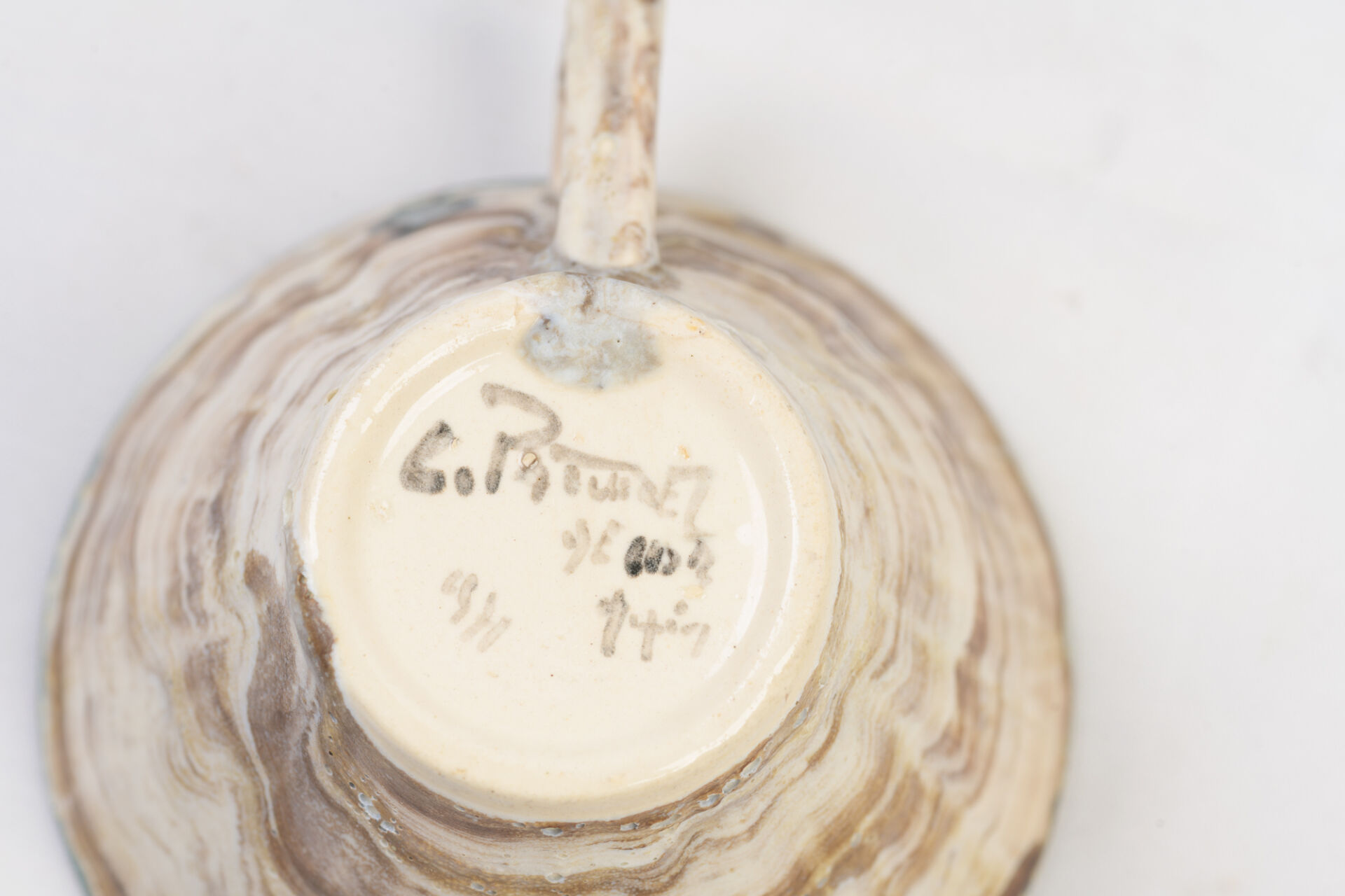 Paire de tasses en céramique émaillée imitant le bois. Signées sous la base. Vers 1970. H : 8 cm ; D : 11 cm