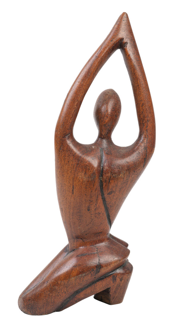 École du XXème. "Homme nu". Sujet en teck sculpté. H : 38 cm ; L : 17 cm ; l : 9 cm