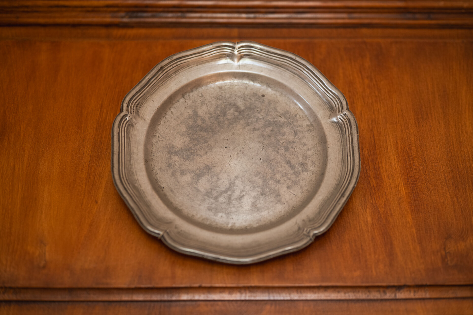 Lot de deux plats en étain. H : 4 cm ; D : 35 cm H : 2 cm ; D : 24 cm