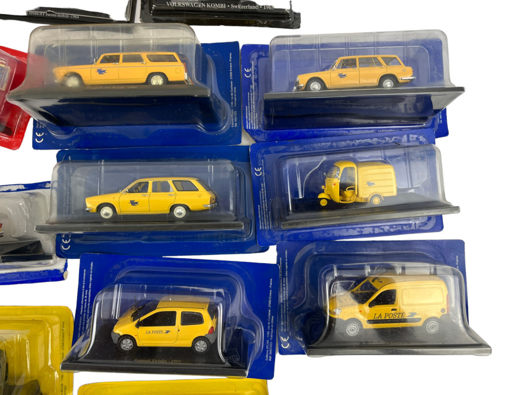 HACHETTE, SOLIDO, VEREM et divers 1/43 ème Collection de trente-deux véhicules de la poste dans leur boîte d'origine et six sans leur boîte Etat neuf sous blister et Etat neuf sans blister
